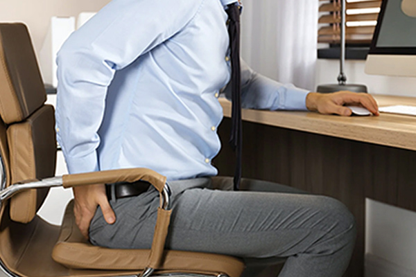 Maintain an upright spine with proper lumbar support to keep the pelvis in a neutral position. Poor back support leads to a subtle pelvic tilt, which gradually increases pressure on the rectal veins. Correct chair alignment improves circulation and reduces strain during prolonged sitting.